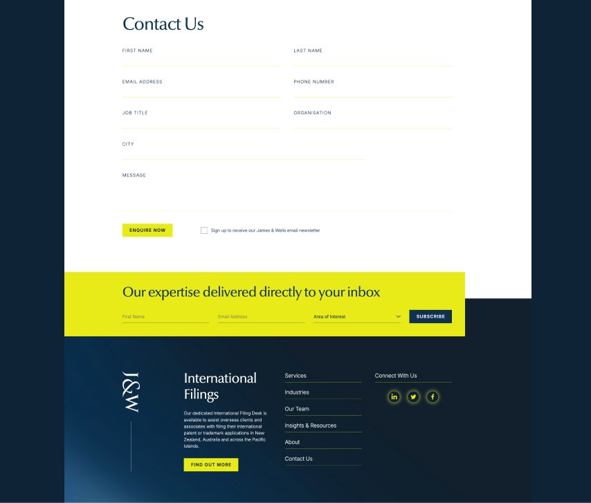 To better showcase their expertise + align with a refreshed brand identity, James & Wells needed a new website that would reflect their standing as industry leaders
